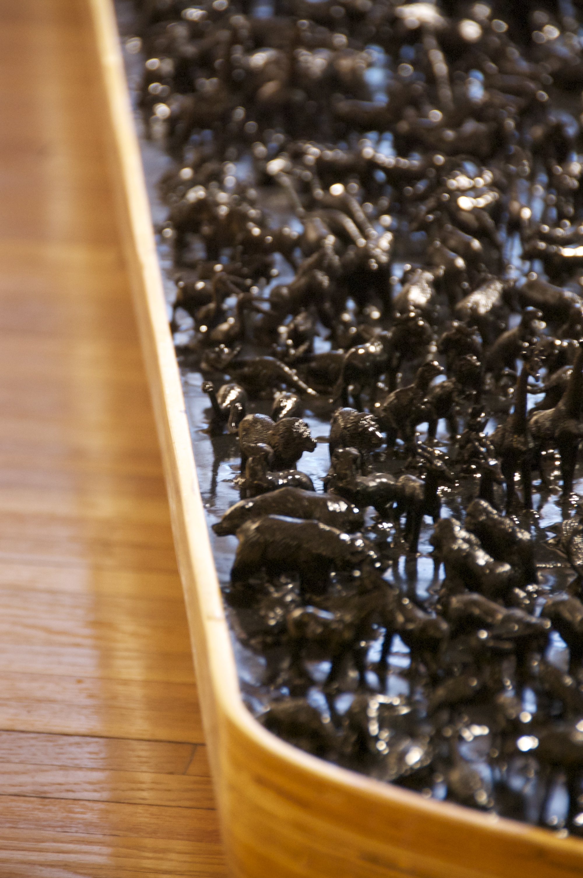 Finally, a Precious Moments update! Several of my co-workers and friends are in the NSU Faculty Exhibition. (FYI, the exhibit closes March 21, so come by the Lincoln Gallery at NSU to see this in person!) One of whom is Sara Christensen Blair who was busy smashing Precious Moments in January. Here are a few shots of the finished project: