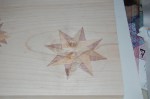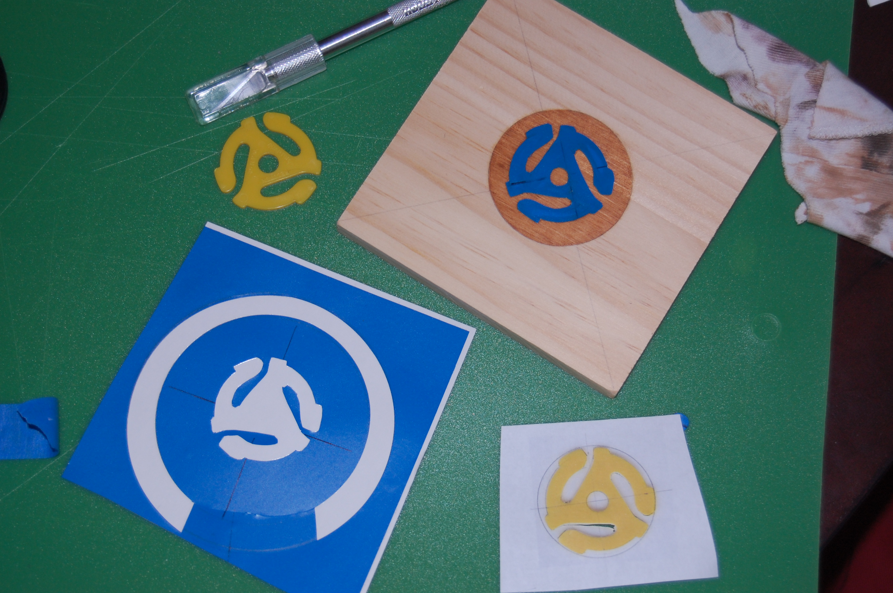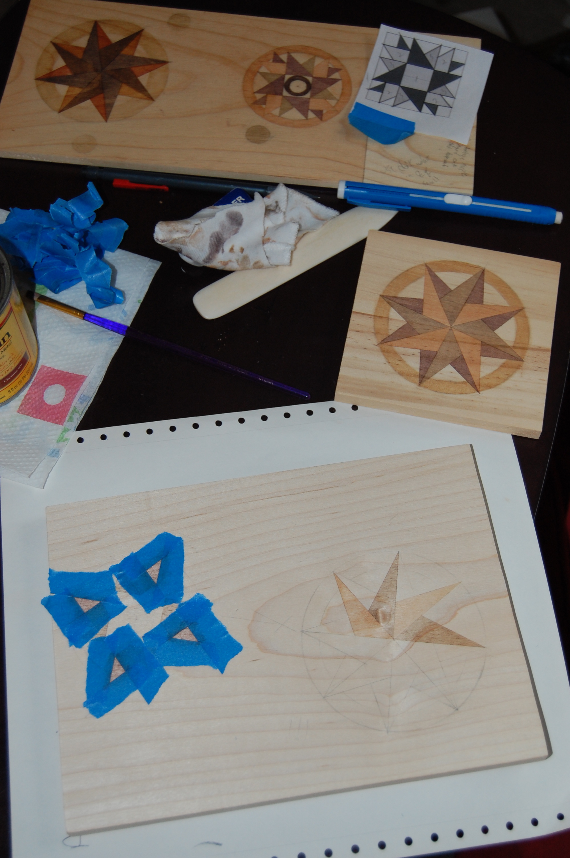 Oh, and stencil practice. Yes, I’m still trying to work out the ideal way for me to make stencils that work with wood and stain. Here’s what I’ve been working on, and it looks like this idea has potential. Now, I just need to practice my X-Acto work.
