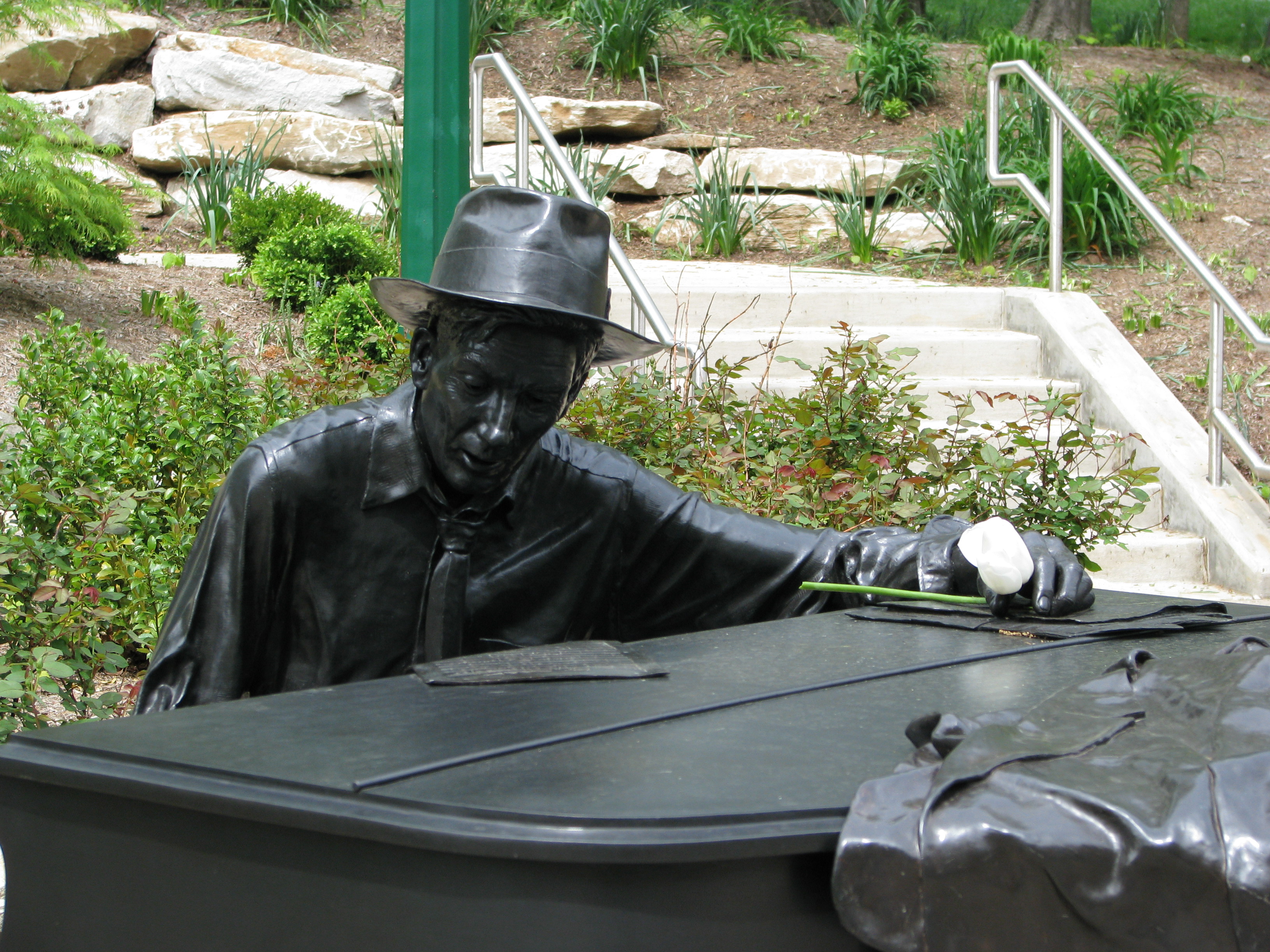 One of my ongoing projects is taking pictures of Hoagy Carmichael.  Yes, I realize he died in 1981, but a statue of him was placed near the stage door of IU Auditorium last fall.  He’s very popular.  People like to leave him things.  I like to think they are offerings to a legend as a way to ensure a good show for those about to perform.  I plan to take pictures of as many of these items that I can.