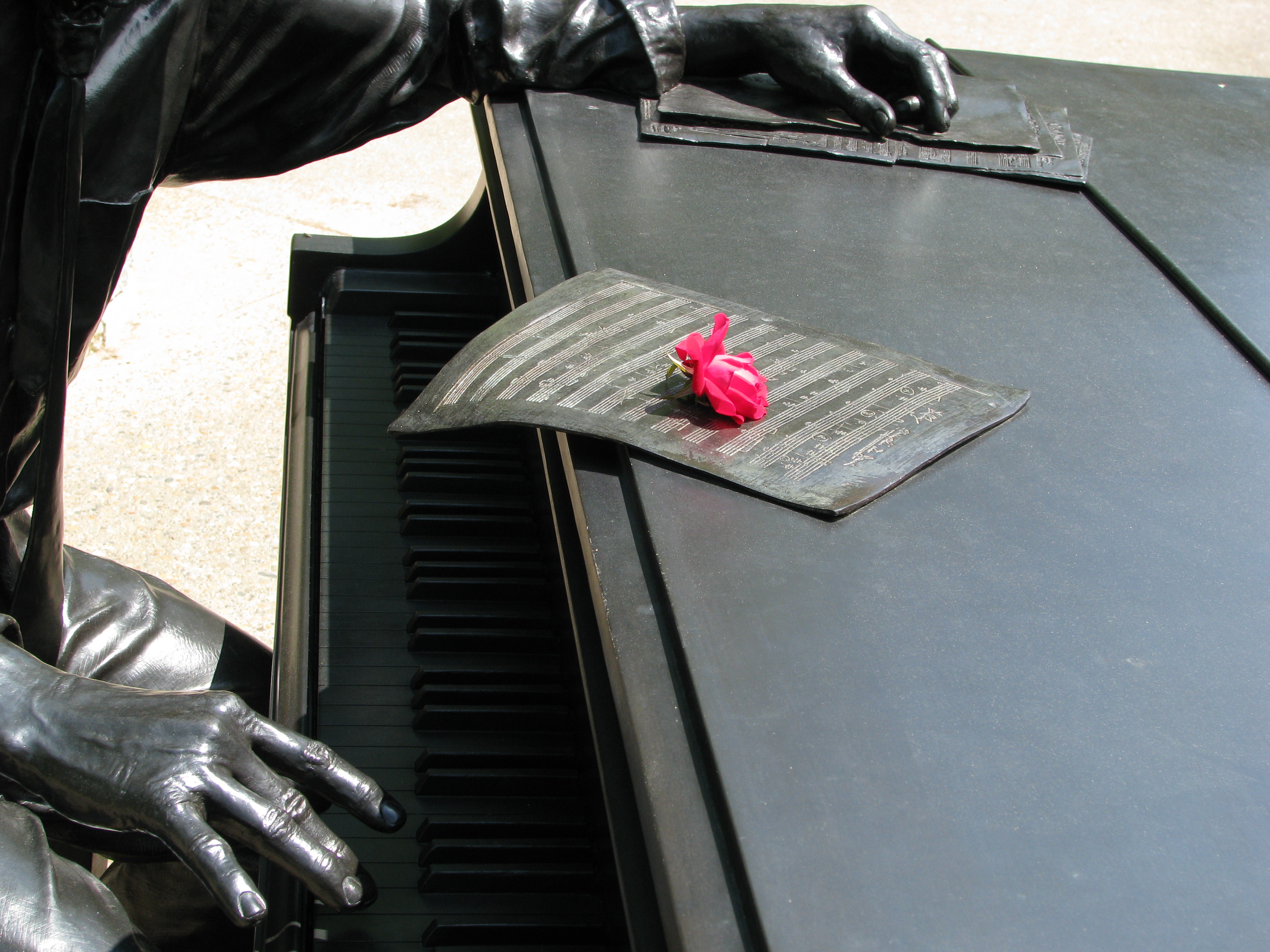 5/15/2009: A tea rose left by on Hoagy’s music.