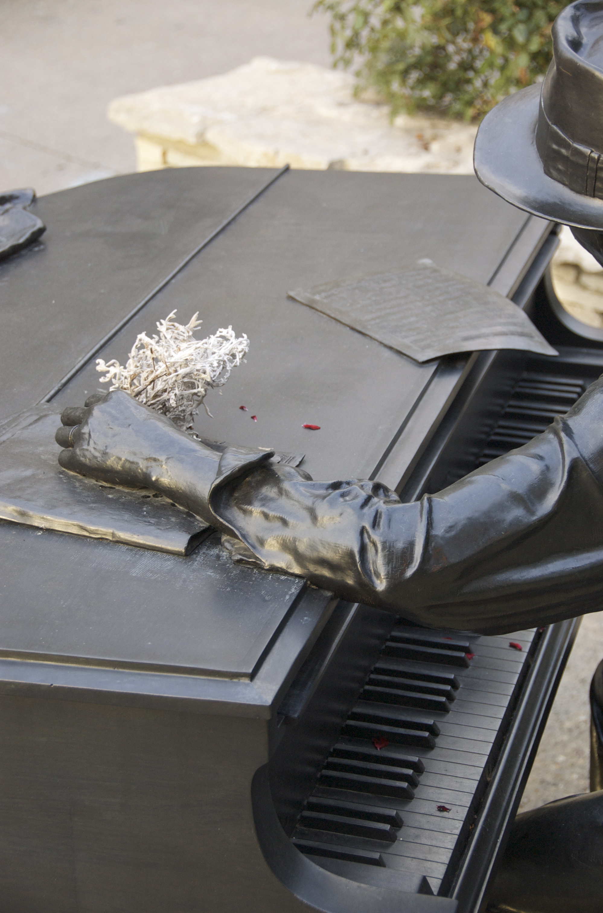 Tags: auditorium, Bloomington, bronze, cream, crimson, flowers, hand, Hoagy Carmichael, Indiana University, IU, red, statue
