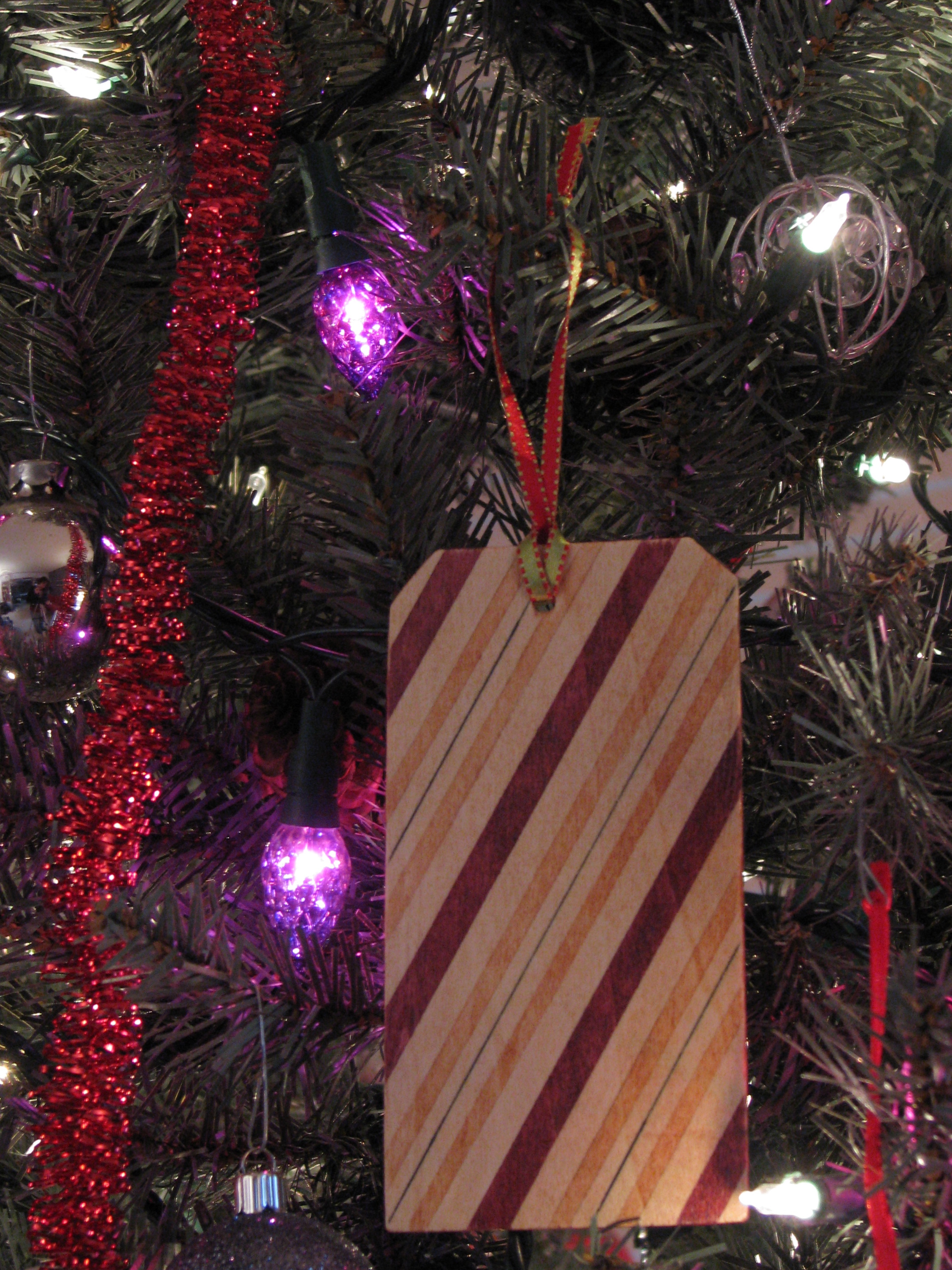 December 11, 2008I had to put away my trivets for a little bit. I realized that my next idea was on a time crunch. Ornaments!! I found some little tag-shaped craft wood. (Yes, I spend a decent amount of time at Michael’s.) A few round ones, and am turning them into stained wood ornaments. So far, I like them, and think they have great potential. This seems like a natural holiday project. Perhaps an annual one? Maybe I should just give them as gifts?