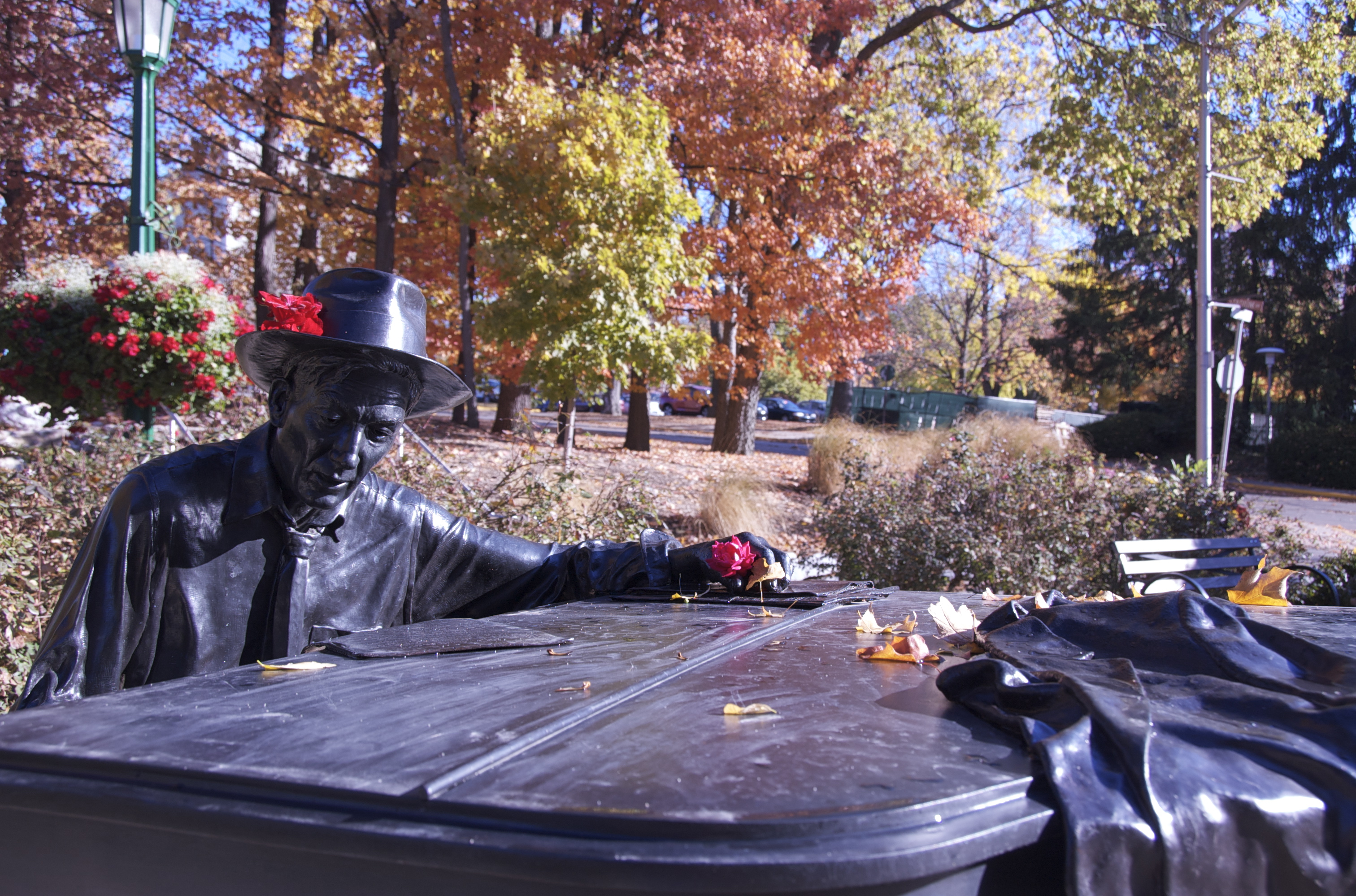 Categories: Fall Tags: auditorium, Bloomington, bronze, dried flowers, Hoagy Carmichael, Indiana University, leaves, statue Comments: Be the first to comment