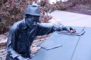 Tags: brim, bronze, cool, flower, hat, Hoagy Carmichael, Indiana University, statue, sunglasses